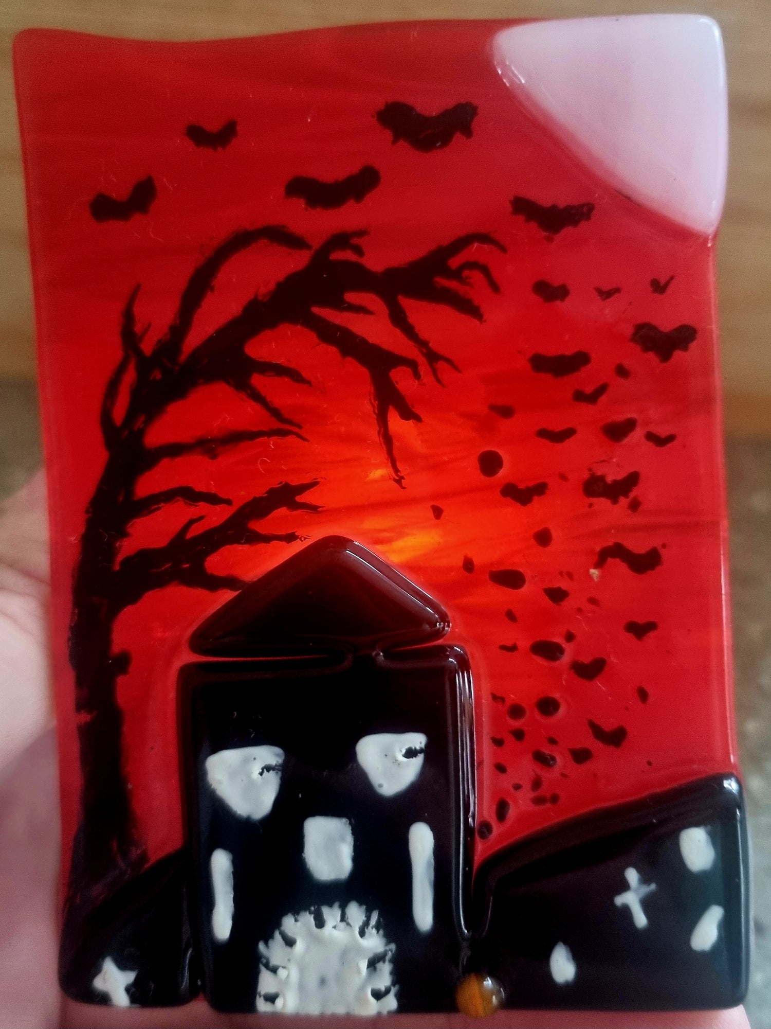 Fused glass tealight stands, & holders.